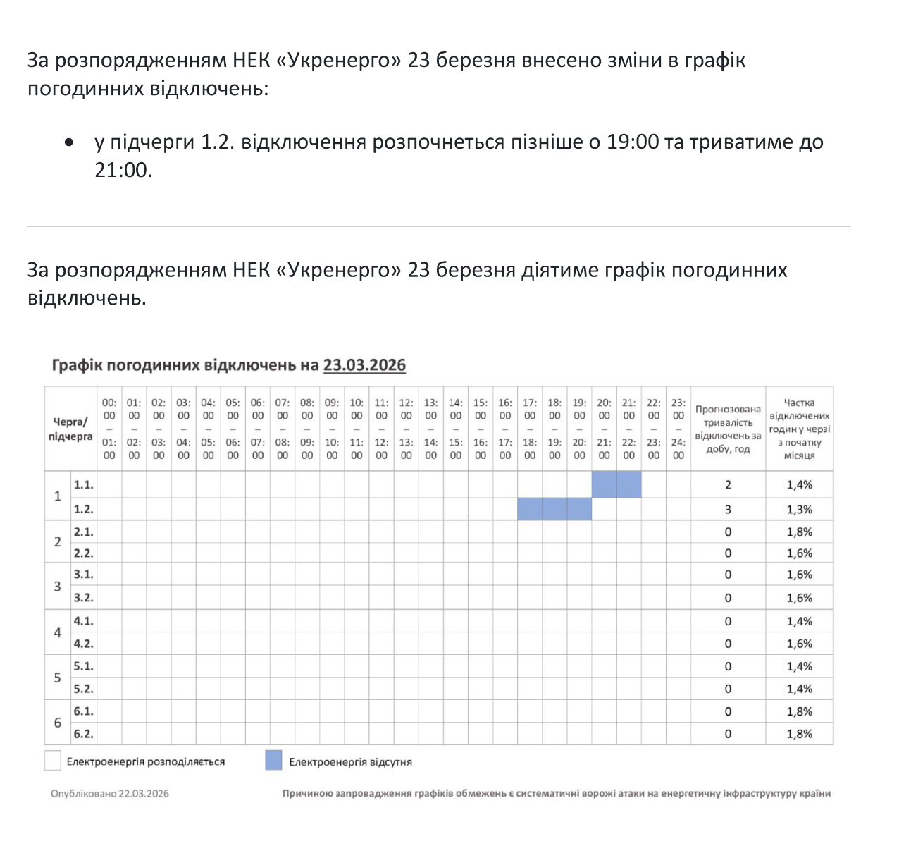 - Графік погодинних відключень 23.03.2026 (оновлення)