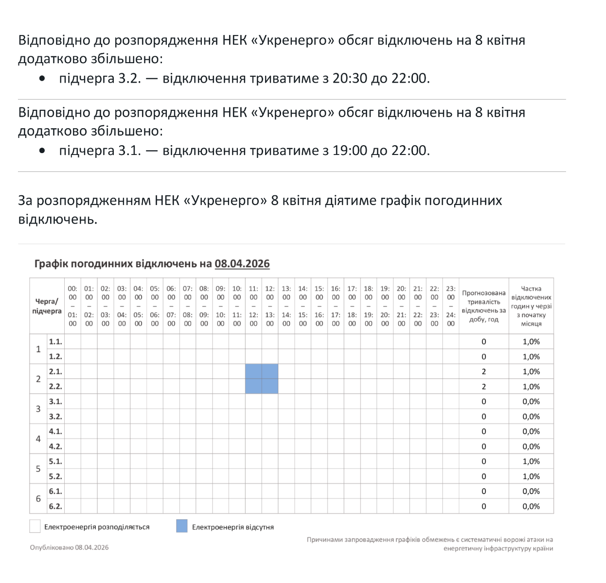 - Графік погодинних відключень 08.04.2026 (оновлення)
